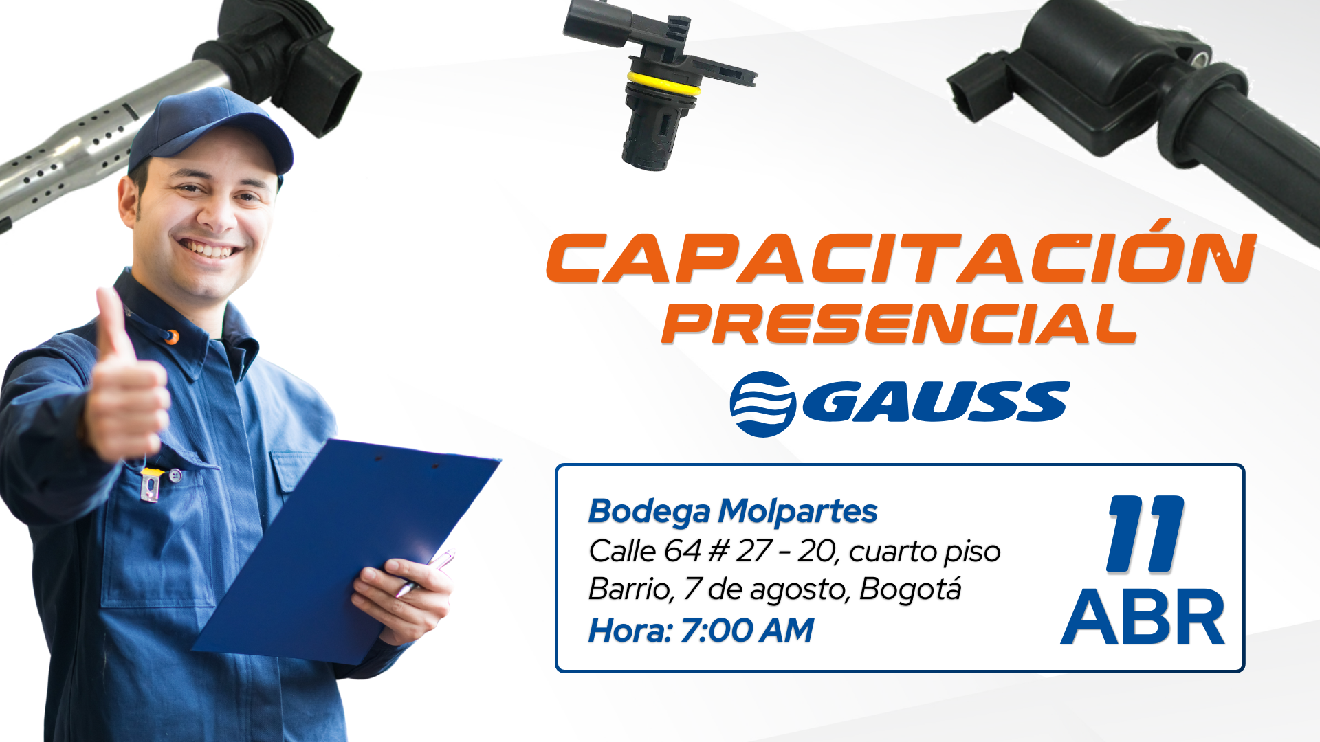 Sí trabajas o vives en el 7 de agosto de Bogotá y te interesa saber más sobre la ingeniería automotriz, Molpartes SAS te invita a un desayuno exclusivo con Gauss en donde podrás resolver tu dudas y mejorar tus conocimientos de la mano de ingenieros expertos sobre el Sistema de Inyección electrónica a gasolina.