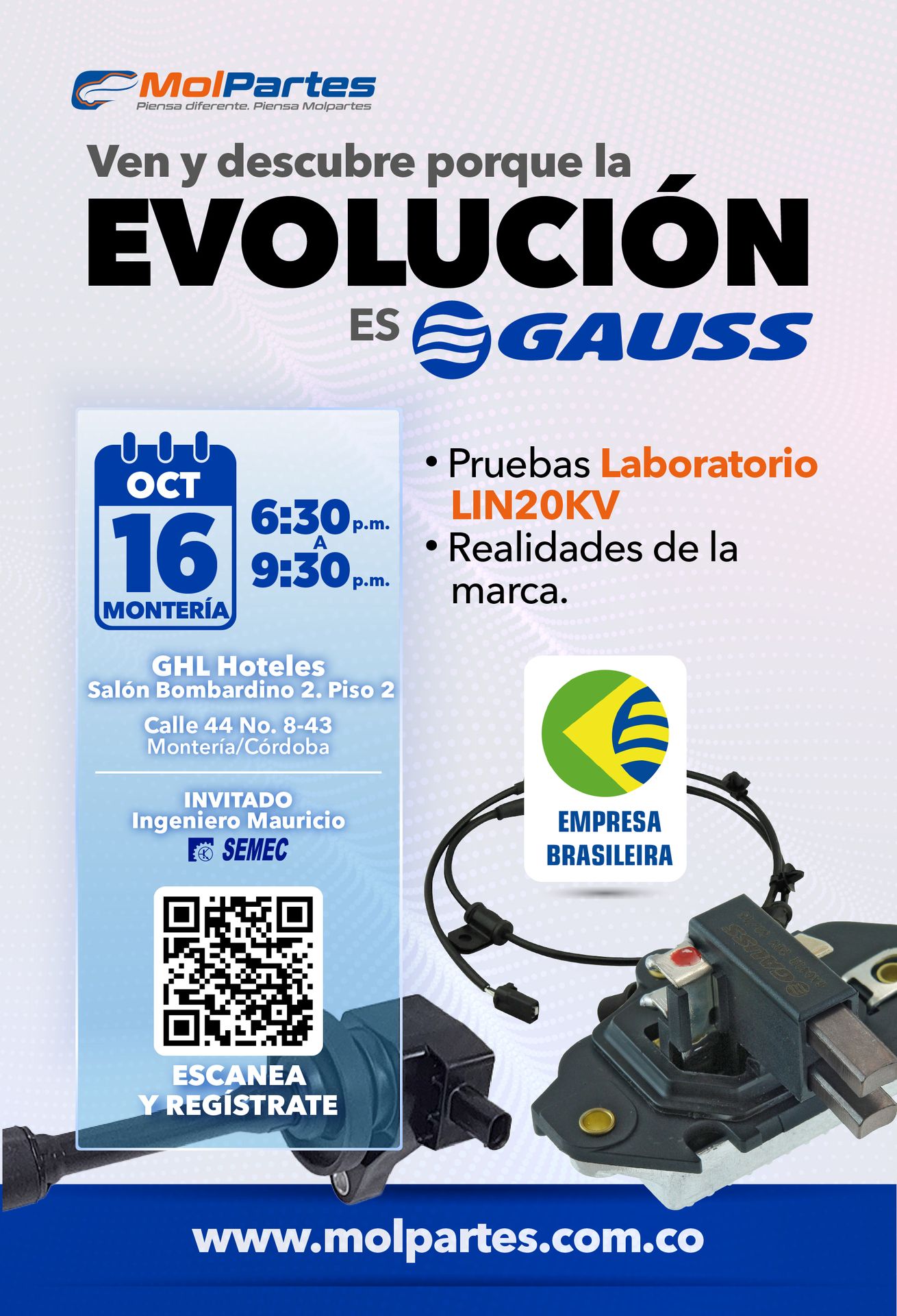 Sí vives en Monteria y te interesa saber más sobre la ingeniería automotriz, Molpartes SAS te invita a una charla exclusiva con Gauss en el SALON BOMBARDINO (Calle 44 No. 8 – 43 Contiguo C.C Alamedas), donde podrás resolver tu dudas y mejorar tus conocimientos de la mano de ingenieros expertos sobre sobre Reguladores y el LIN20KV , ten en cuenta que el evento no incluye parqueadero.