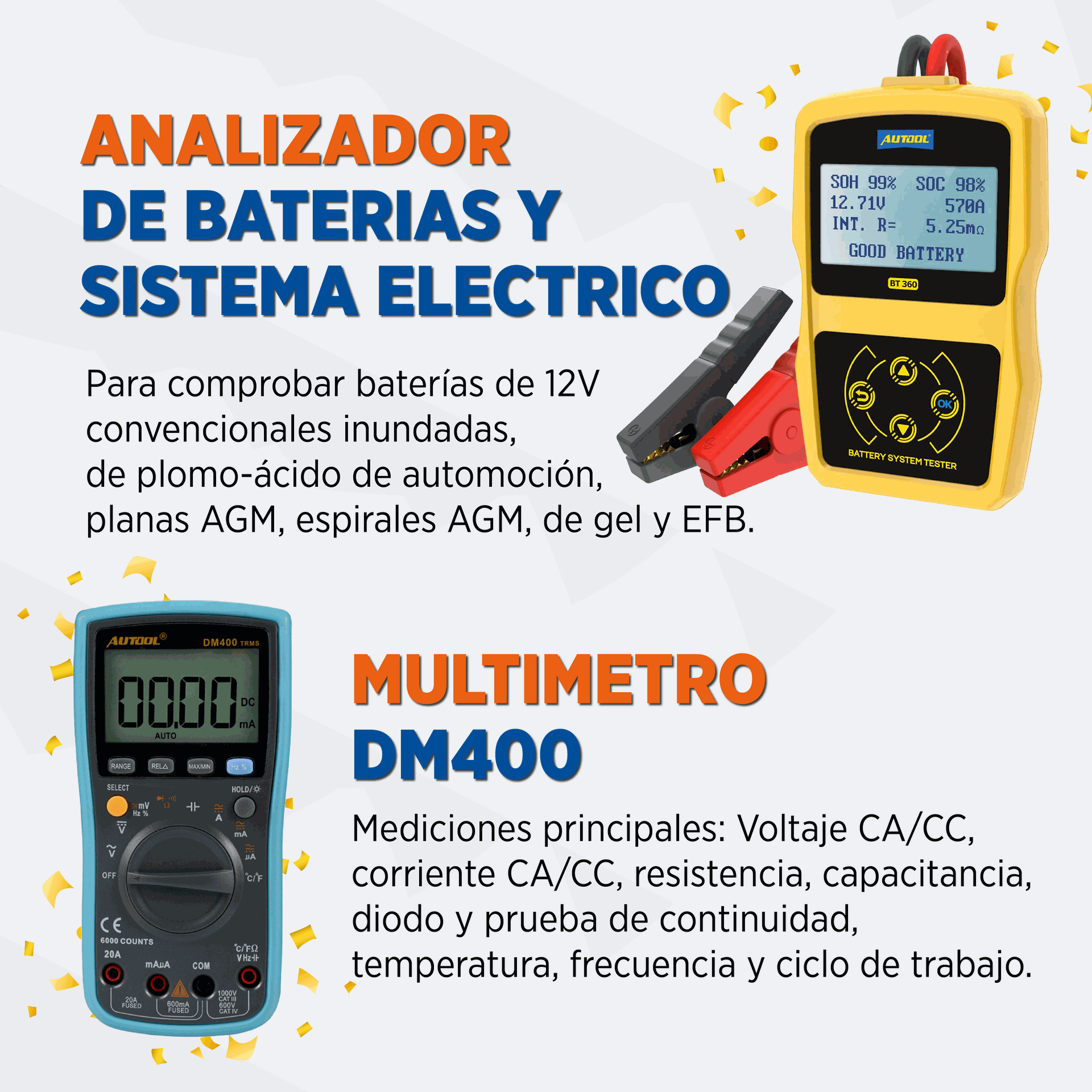 El comprobador de baterías AUTOOL BT360 incluye funciones de prueba de baterías, prueba de arranque y prueba de carga. Soporte multilingüe: Disponible en 10 idiomas. Hay versiones en inglés, español, alemán, francés, italiano, ruso, polaco, chino, holandés y japonés. Se pueden personalizar otros idiomas.